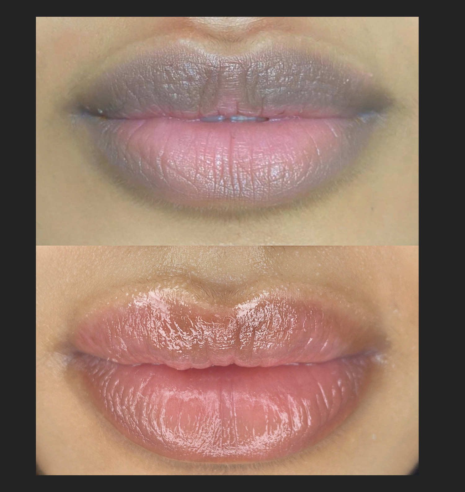 Dark Lip Correction is a specialized treatment for those with cool or dark lips in which the darkness of the lips is neutralized, creating an even-tone across both top and bottom lip for a consistent nude/pink lip tone.